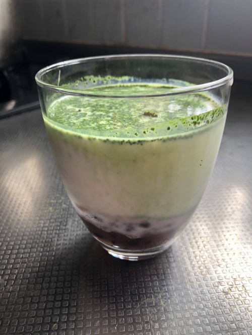グラスに注ぎ、まっ茶をふる。